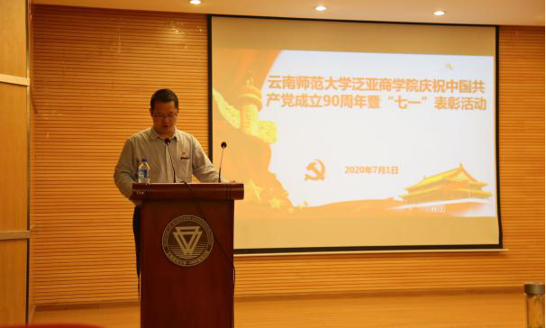 7月1日上午,泛亚商学院在一二·一西南联大校区明达楼106报告厅举行庆祝中国共产党成立99周年暨2020年“七·一”表彰活动,泛亚商学院全体党委委员、在校师生党员、党员发展对象、入党积极分子和部分党外师生共85人参加了此次活动。活动由学院党委委员、副院长、MBA教育中心副主任、教工党支部书记陈长瑶同志主持。