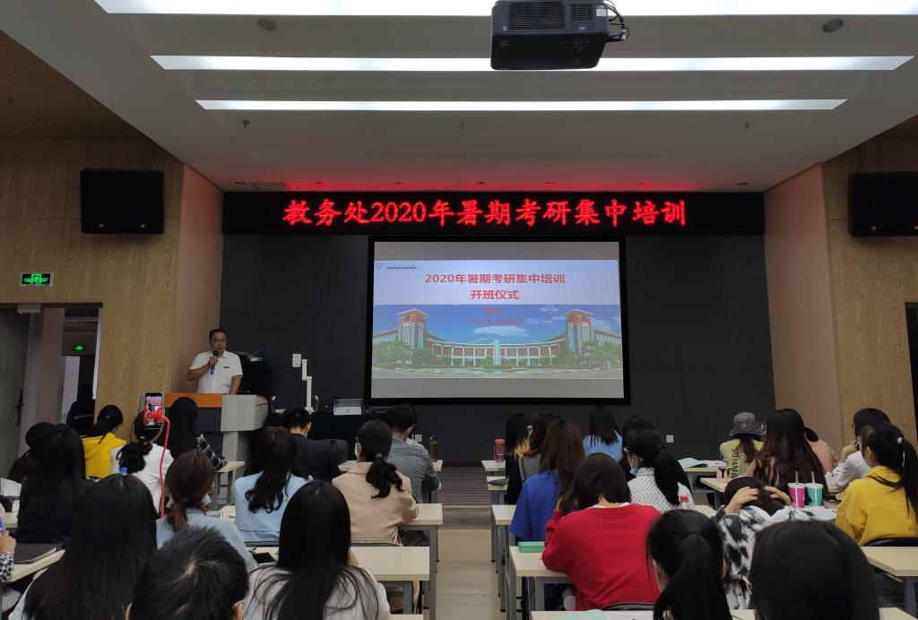 7月22日上午8:30,培训开班仪式准时举行。教务处陈新处长向参培学生介绍培训目的、培训讲师、培训科目和培训纪律,并帮助同学们分析考研形势,鼓励同学们坚定考研信心,祝福同学们考上心仪的学校和专业。