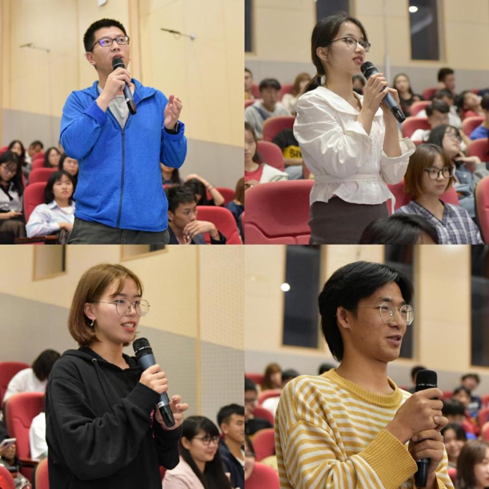 互动环节,在场师生分别从爱好、学业、工作等方面进行提问,许金龙从自身学习经历、工作经验及写小说的爱好出发,为同学们耐心地解答,现场气氛活跃,得到师生的一致认可。