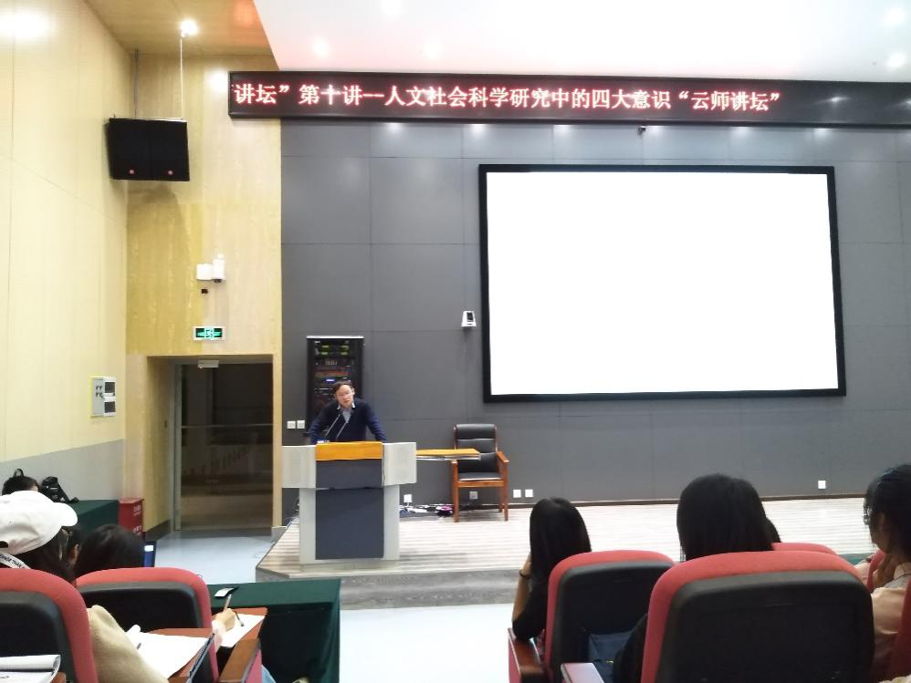 10月9日晚,云师讲坛第十讲邀请到德赢官网Vwin文学院副院长--傅宇斌教授担任主讲嘉宾。讲座在德赢官网Vwin呈贡校区国家级实验教学示范中心214报告厅举行,傅教授为师生带来了“人文社会科学研究中的四大意识”为主题的讲座。讲座由科学技术处副处长刘连杰教授主持。科学技术处、网络与信息中心等职能部门负责人,以及在校本科生、研究生等230余名师生代表一起现场聆听了讲座,讲座还在线上开通了同步直播。