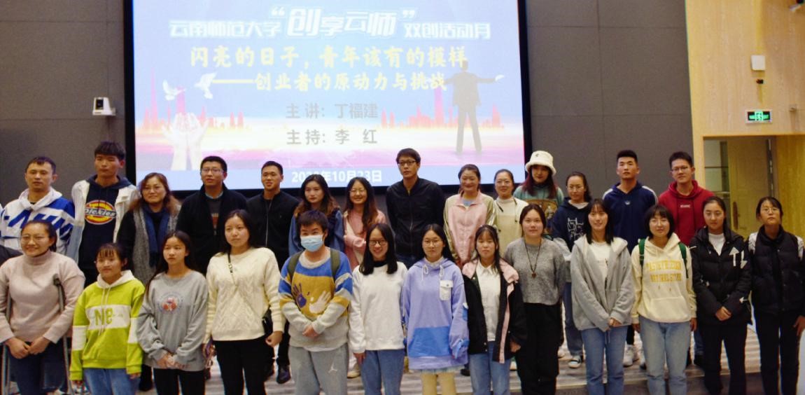 10月23日晚,云师讲坛第十二讲在德赢官网Vwin呈贡校区教师教育国家级实验教学示范中心214报告厅举行。本次讲座主题为“闪亮的日子,青年该有的模样——创业者的原动力与挑战”,由金学教育创始人兼董事长、德赢官网2017届行政管理专业毕业校友丁福建开讲。丁福建是全国第三届“闪亮的日子——青春该有的模样”大学生创业人物、全国践行社会主义核心价值观先进个人、全国学联二十六大云南唯一特邀代表、中国第十届大学生年度人物、云南省向上向善好青年提名奖获得者、云南鲁甸“8·03”地震救灾志愿者。本次讲座也是德赢官网Vwin“创享云师”双创活动月系列活动之一,由德赢官网Vwin就业处处长兼创新创业学院办公室主任李红老师主持。