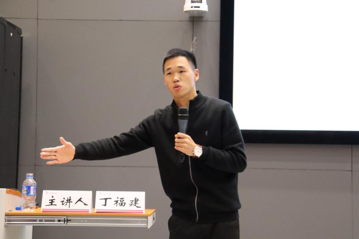 讲座中,丁福建校友向同学们分享了他在大学四年的八次创业故事,他用“服装定制”、“快递代理”、“新媒体运营”、“最美证件照拍摄”等项目运营“过来人”的亲身经历和体验告诉大家:坚持和勤奋是创业中很重要的部分。针对“选择就业还是创业”这一问题,丁福建校友谈到了他创办金学教育的初心和过程,他表示“创业的关键就是寻找初心”。他希望创业者能看向未来,并能在社会上创造价值,也希望能够把信心和希望传递给更多的人。同时他告诉同学们创业是一个深思熟虑的过程,这一切的基础是专业学习,它是我们日后做任何事情的关键。
