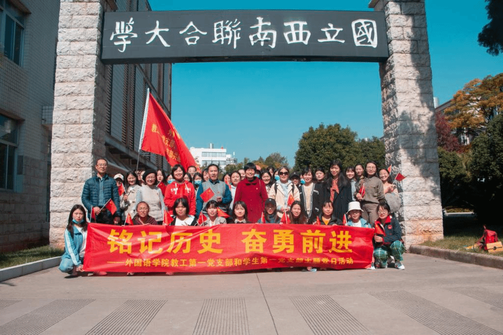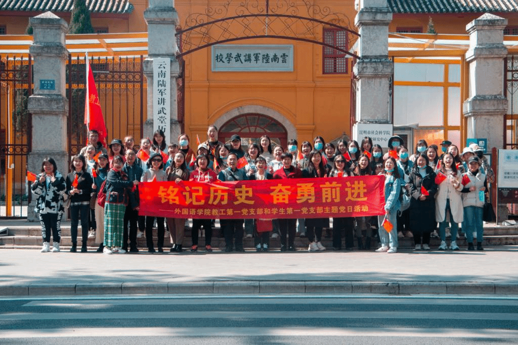11月12日,外国语学院教工第一党支部和学生第一党支部以“铭记历史,奋勇前进”为主题,前往德赢官网Vwin西南联大博物馆和云南陆军讲武堂两地进行参观学习,教育引导广大师生铭记历史,传承红色基因。外国语学院党委书记王丽峰同志、党委副书记杜敏菊同志全程主持并参加了此次主题党日活动。
