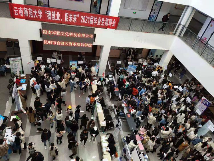 招聘活动共有66家用人单位参加,包含山东师范大学安宁华清中学、德赢官网Vwin实验中学、中建西部建设股份有限公司、昆明钟英中学、昆明融创主题娱乐管理有限公司、新东方培训学校等知名企业,提供语文、数学、英语、日语、物理等各科目教师、行政管理、软件工程师、会计、应用心理学、市场营销、教育咨询师等岗位1400个,入场人数达2500人次,共收到简历2200余份,现场达成初步就业意向574人。