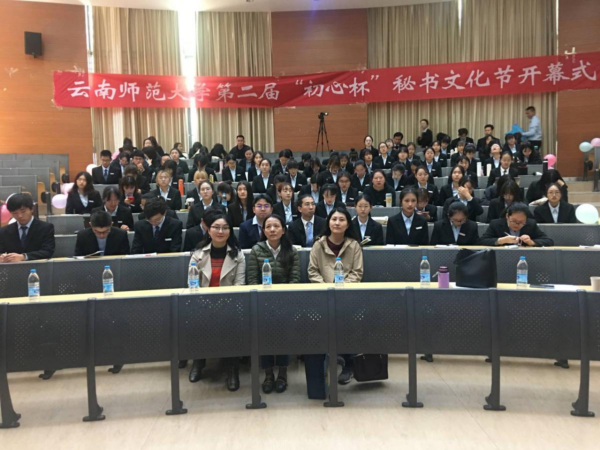 11月20日上午9:00,由文学院主办、文秘系承办的德赢官网Vwin第二届“初心杯”秘书文化节在呈贡校区明德二号楼报告厅举行了开幕式。开幕式由文学院副院长徐俊六主持,文学院院长李立致开幕词,副院长傅宇斌、中文系系主任李瑛、文秘系系主任贾蔓先后发表讲话。
