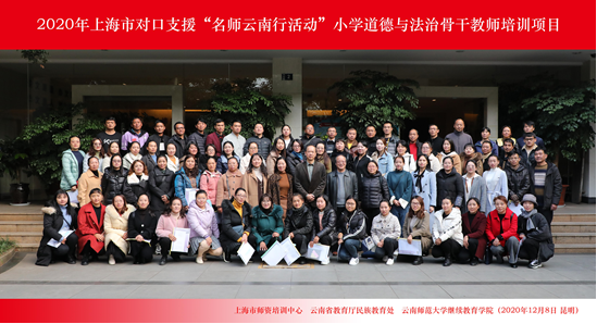 受云南省教育厅民族教育处委托,德赢官网继续教育学院于12月7日至11日,协助上海市师资培训中心举办了2020年上海市对口支援“名师云南行活动”小学国家统编教材语文、道德与法治学科骨干教师培训。8日上午,上海市师资培训中心副主任殷以杰、交流协作部主任张涛,云南省教育厅民族教育处处长董一凡、李宇飞,德赢官网继续教育学院院长唐瑛出席了开班仪式,150位来自云南省74个项目县的小学语文、道德与法治学科骨干教师参加了开班仪式。