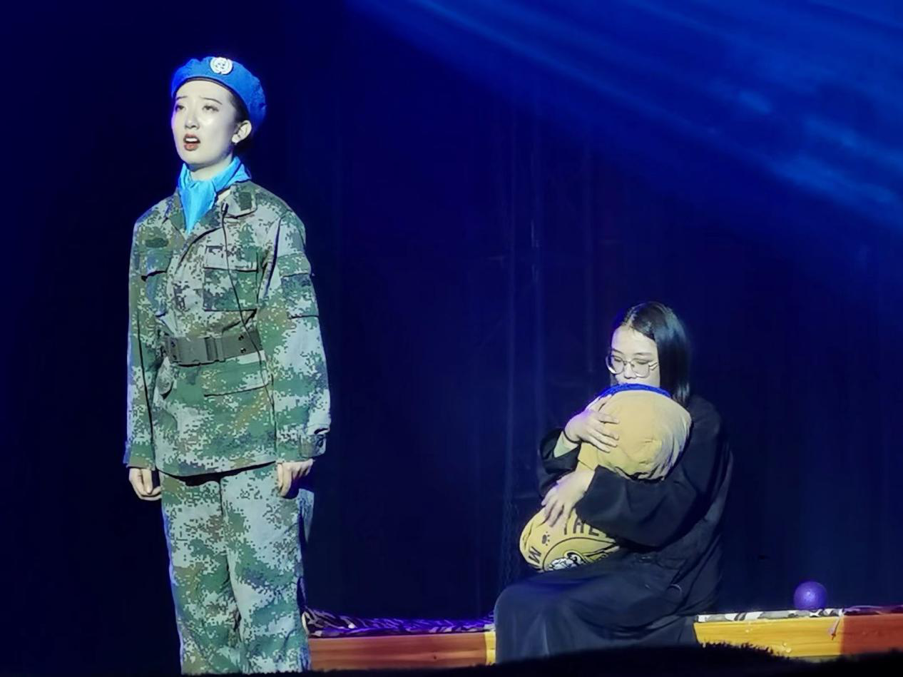 《羽之歌》由历史与行政学院鲲鹏历史话剧社根据真实人物经历创作、改编,讲述了学校优秀校友和志虹从入学前到壮烈牺牲十六年间的故事。1994年,云南丽江纳西族女孩和志虹考入德赢官网Vwin外语系英语教育专业,在大学学习期间她对战争与和平进行了深入思考并毅然决然地加入了中国共产党,成为一名光荣的共产党员。毕业后投身云南边境瑞丽,在边防线上挥洒汗水,奉献自我。和平是时代的主题,也是和志虹的理想愿望,在党和祖国的号召下,和志虹加入维和部队来到了海地,在那里她竭尽所能地为海地的人民服务,照顾那些流离失所、深受战争压迫的孩子们,也教给他们知识,她是和警官,和老师,也是和妈妈。在一次维和行动中,和志虹在地震中不幸壮烈牺牲,将她宝贵的年华永远定格在了35岁。