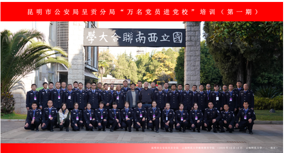 受昆明市公安局呈贡分局的委托,继续教育学院于12月14日至16日,举办昆明市公安局呈贡分局“万名党员进党校”第一期培训。12月14日上午,继续教育学院党委书记肖飞、昆明市公安局呈贡分局党委副书记、政委杨红涛出席了开班仪式,50位2020年度呈贡分局的党员“七星”、各部门党员之星和党务工作者参加了开班仪式。