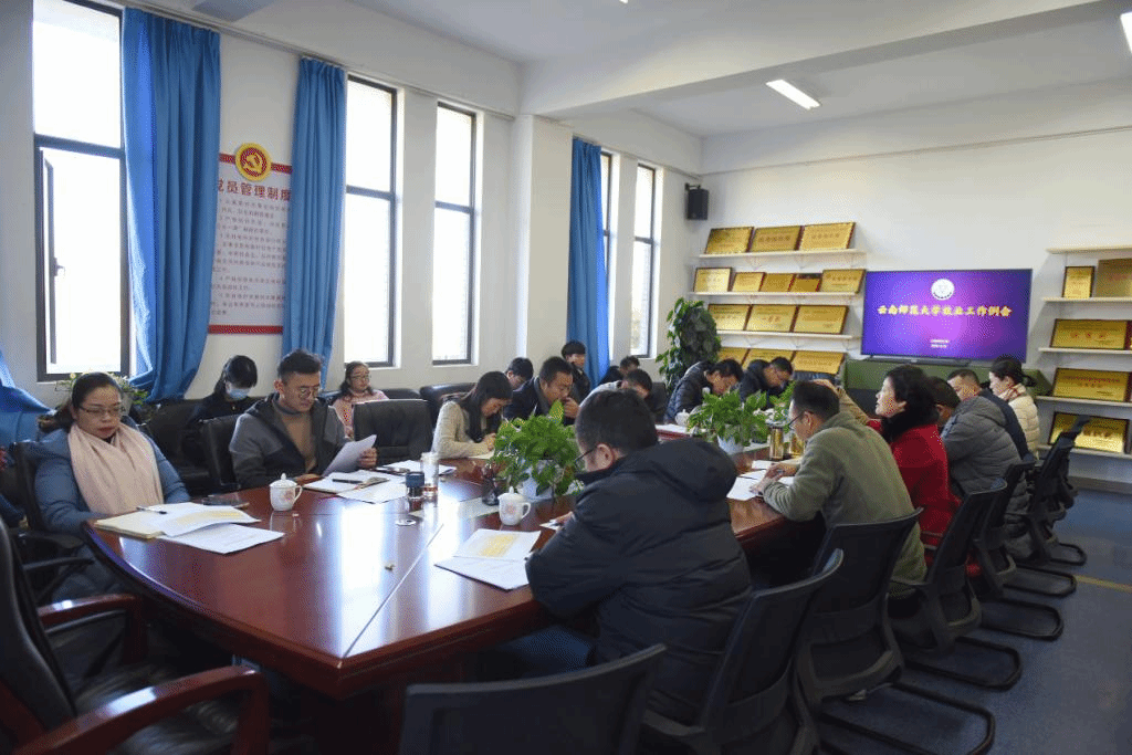 12月25日上午,就业处在呈贡主校区大学生活动中心312会议室召开就业工作例会,各学院(学部)党委副书记、就业处科级以上干部参加了会议。