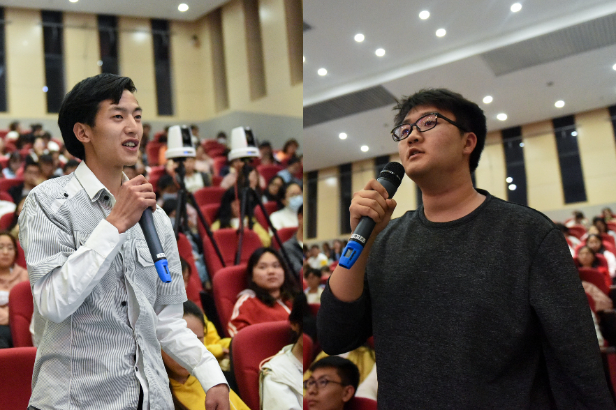 在提问环节,她与同学们互动交流,希望大家学会表达、学而练习、要多读书并勤记笔记,并就同学们提出的相关问题,一一给予解答。