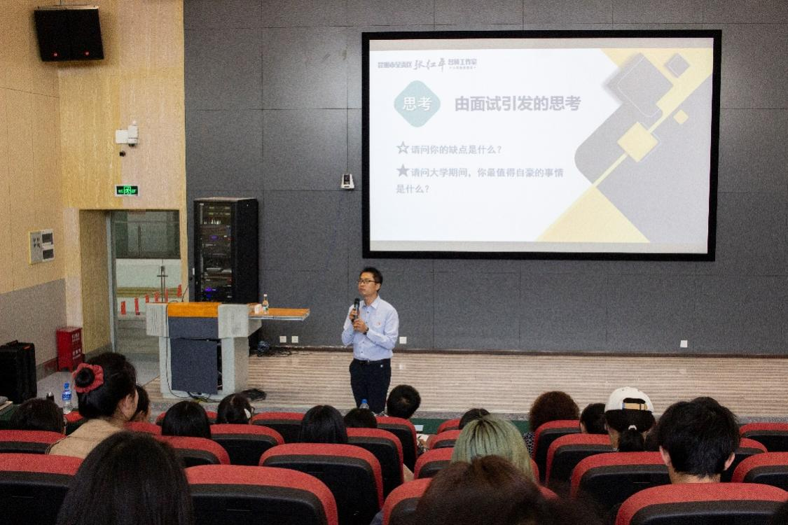 张红平老师以“仰望星空 脚踏实地”为主题,从一个教育工作者的经验出发,给在场的所有人上了一堂生动的生涯规划课。他用自己的阅历以及丰富的案例从目标、实力、心态三个方面完美阐释了自我认知、职业认知以及决策行动的生涯规划理论,为同学们提出了学习、生活、就业及职业生涯规划作出建议及引导。