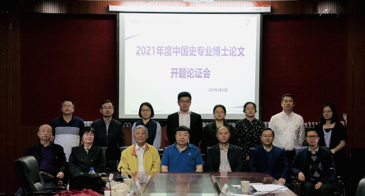 历史与行政学院2021年度中国史专业博士、博士后论文开题论证会于4月22日上午在明德3号楼会议室举行。此次开题论证会由云南大学方铁教授,中国社科院历史研究所李世愉研究员,云南大学陆韧教授,德赢官网Vwin朱端强教授、周智生教授、邹建达教授、白云教授、张永帅教授、张媚玲教授共同组成论证委员会,对历史与行政学院中国史专业2019级博士和博士后论文进行开题论证。