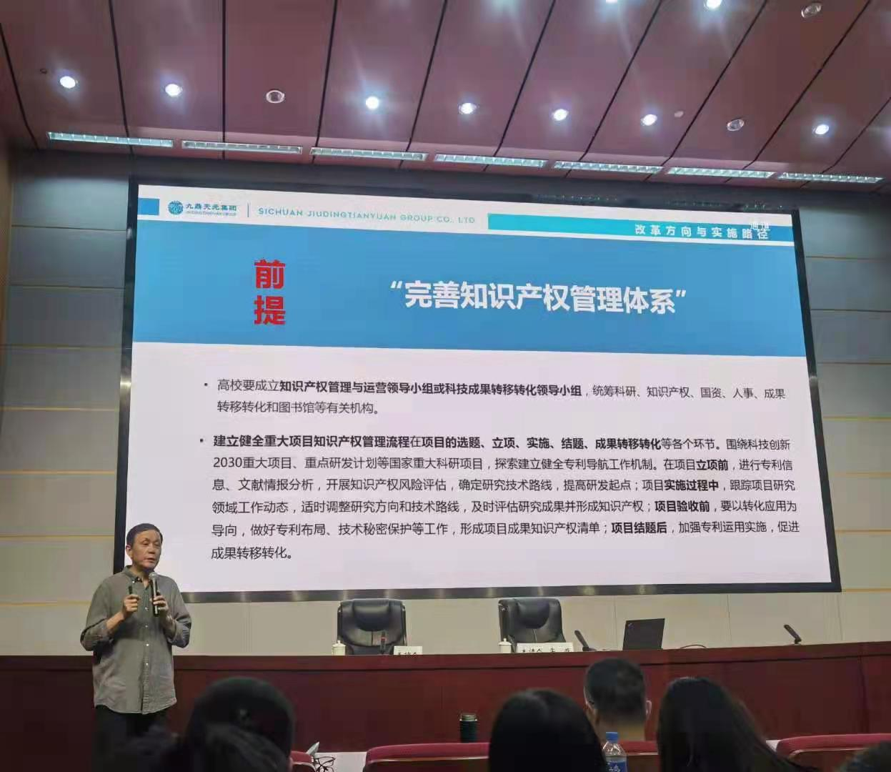 李戎副总经理围绕高校知识产权管理与转移转化,阐述了目前国内高校在知识经济时代所面临的知识产权问题与成果转化问题,进而提出了高校实施知识产权战略和开展成果转化工作的宏观思考。