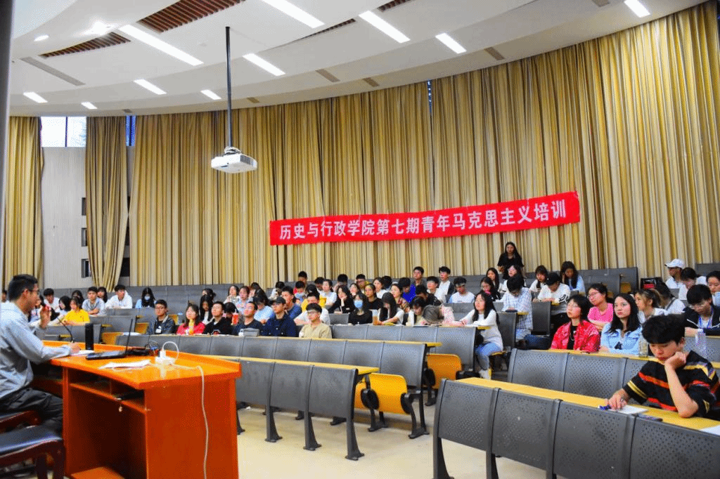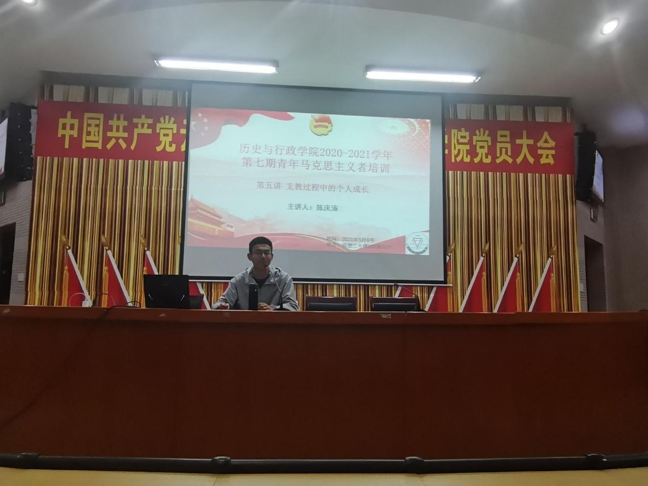 共青团历史与行政学院委员会于5月6日晚在明德三号楼报告厅组织开展了第七期青年马克思主义者培训第三讲。培训由历史与行政学院2020级研究生陈庆涛主讲,学院160余名学员参加了培训,培训由学院团委书记周鹏老师主持。