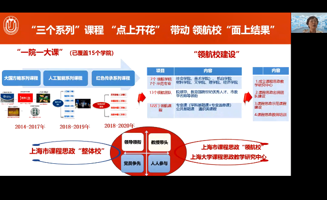 5月14日,上海大学顾晓英教授带来了以“课程思政 赋能一流课程”为主题的讲座。顾晓英教授介绍了上海大学“大国方略”、人工智能、红色传承等系列课程的建设历程、内容结构、团队建设以及“项链模式”教学法的先进经验;阐释了课程思政的内涵、理念、框架和基本原则;强调了专业课教师要提升站位、打开视野,增强思政意识,准确把握不同性质的课程特点,在知识传授中注重价值引领,在价值传播中注重知识含量,努力让课程思政更“有温度”,更有“有智慧”。本次讲座加深了老师们对课程思政的认识和理解,对于推进德赢官网课程思政教学研究与改革,促进课程思政建设具有指导意义。
