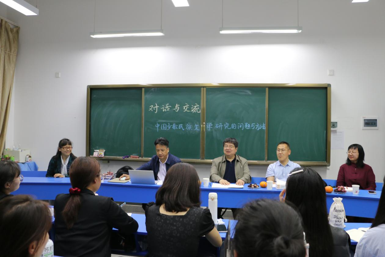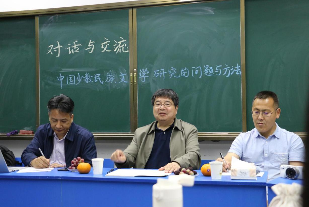 为进一步深入学习贯彻习近平总书记关于文艺工作、民族工作的重要论述,研讨少数民族文学创作如何在铸牢中华民族共同体意识上发挥独特作用,以及探讨我国少数民族文学创作现象诸多理论研究的历史与现状,文学院于5月24日晚在明德3号楼举办了“对话与交流:中国少数民族文学研究的问题与方法”讲座交流会。中国社会科学民族文学研究员王宪昭,副研究员吴刚、杨杰宏,云南傣族作家、评论家柏桦女士应邀参加了讲座,本次讲座由文学院李瑛教授主持。