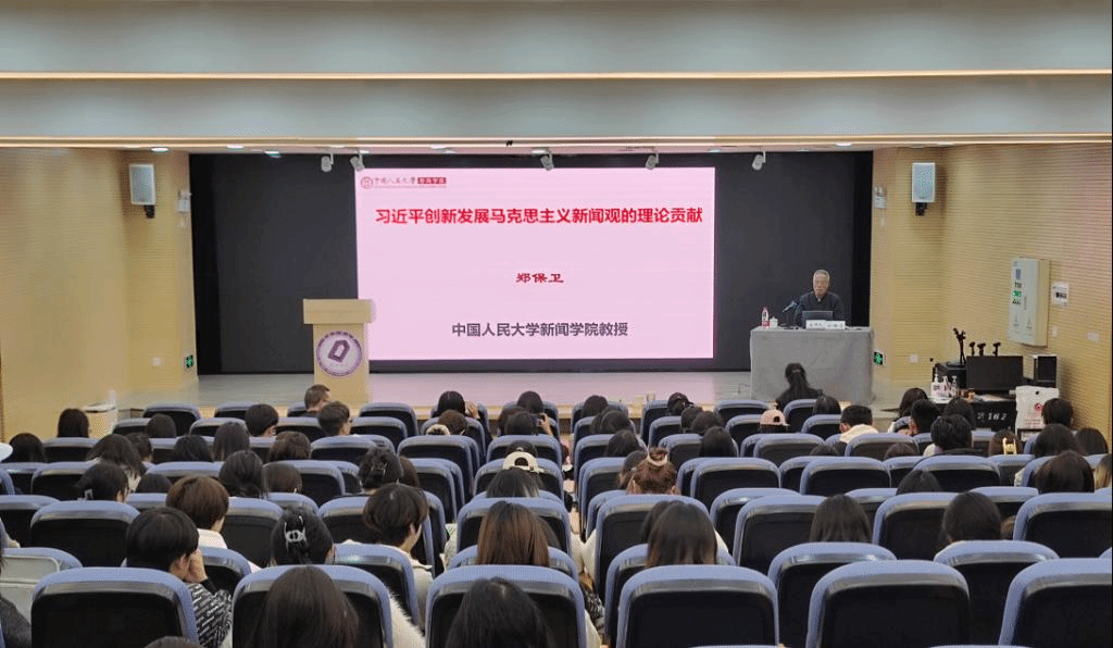 在讲解习近平总书记在创新发展马克思主义新闻观方面的理论贡献时,郑保卫教授为同学们解读了党的十八大以来习近平总书记在宣传思想文化和新闻宣传领域的多次重要讲话,从“系统阐释了新时代中国特色社会主义新闻舆论工作的核心问题”“全面总结了中国共产党新闻事业百年发展的历史经验”“科学引领了新时代中国特色社会主义新闻学的学术研究”“高度凝练了中国共产党百年新闻思想的理论精髓”四个方面,全面阐述了习近平为创新发展马克思主义新闻观所做出的重要理论贡献。
