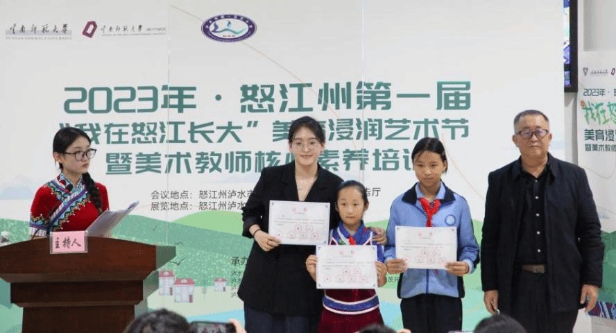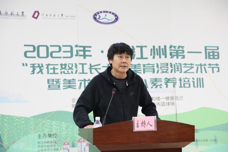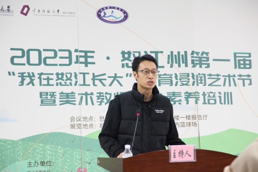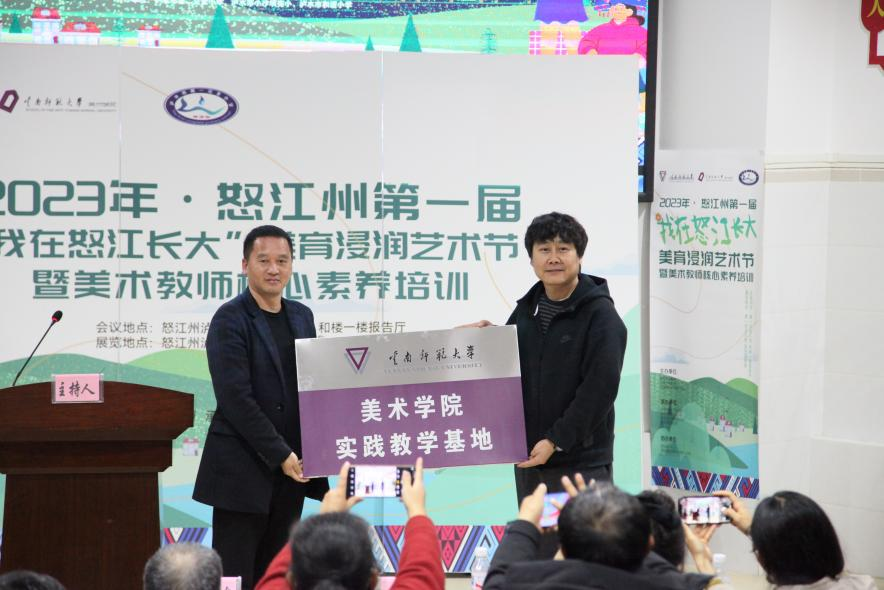 为更好地呈现德赢官网Vwin美术学院第一期赴怒江州泸水市“美育浸润行动计划”项目实施成果,12月6至7日,由德赢官网美术学院和泸水市教体局联合举办的第一届“我在怒江长大”-美育浸润艺术节暨美术教师核心素养培训在泸水市第一完全小学举办。怒江州教体局调研员赵旭东、泸水市教育体育局副局长张晓军、美术学院院长戴杰、泸水市第一完全小学校长罗金龙、教学名师翁滇林团队和美育浸润计划指导教师参加了此次活动。