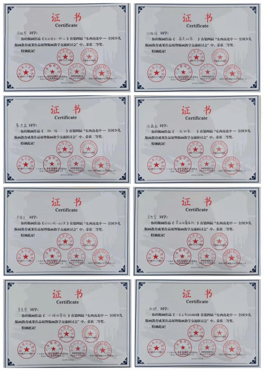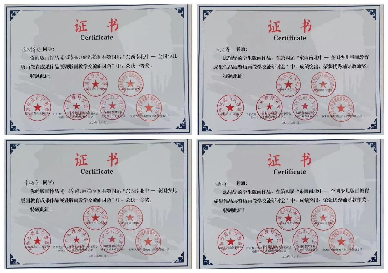 随后,双方举行了德赢官网Vwin美术学院实习实践基地授牌仪式。赵旭东和张晓军为“东南西北中-全国少儿版画教育成果作品展”一等奖和二等奖获得者颁发了证书。作品以“怒江民族文化与地域资源”为内容,是首期浸润计划驻点教师带领所在帮扶学校孩子以版画艺术的方式进行美育实践的成果。虽然这些孩子此前并未对版画深入学习,但通过实习教师的指导,孩子们以其独特视角创作出的版画作品在全国性比赛中获得2项一等奖,8项二等奖的优异成绩。