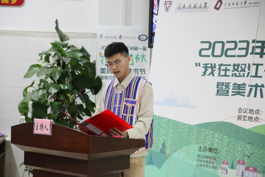 张晓军在致辞中表示,首届艺术节展出的作品来自于全州各中小学校,是学生们心灵的表达,是他们对世界的理解和感悟、对家乡山水的热爱,希望大家认真欣赏每一幅作品,坚持美术教育,不断追求卓越,用自己的作品传递美的力量,为怒江州社会发展和文化繁荣做贡献。他指出,泸水市教体局联合德赢官网Vwin美术学院邀请全省一流名师,通过线上线下融合的方式,进行专题讲座和现场教学示范,为全市美术教师提供了一个难得的学习交流平台。教体局将进一步加强与德赢官网Vwin美术学院的合作,成立名师工作室,进一步提高泸水市美术教师的核心素养,推进泸水市美术教育再上新台阶。