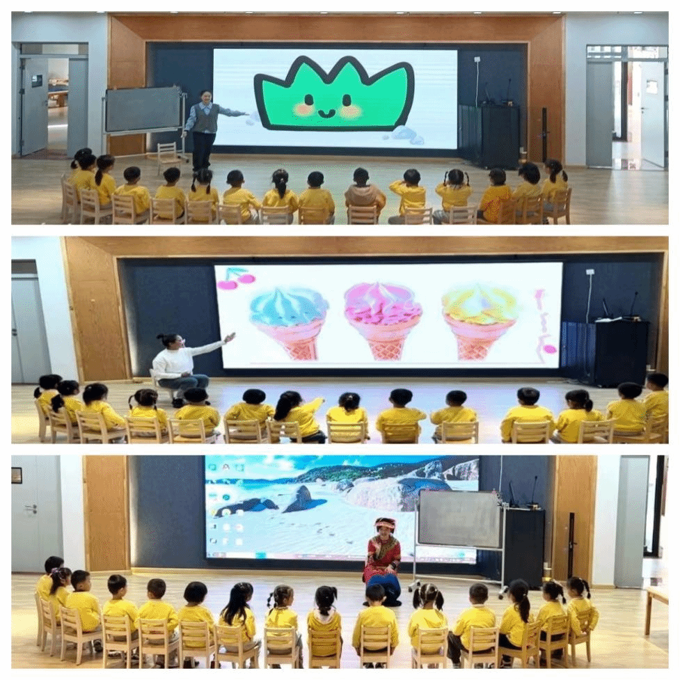 教学展示环节,教育学部同学分别带来了在“高教社杯”云南省普通高等学校教师教育联盟第十一届师范专业大学生教学技能竞赛中的获奖活动(大班语言活动《蒲公英》、大班音乐活动《阿西娃娃耍月亮》、中班美术活动《移动的美味冰淇淋店》)。三位同学通过教学展示与说课反思相结合的方式进行了生动的教学示范。