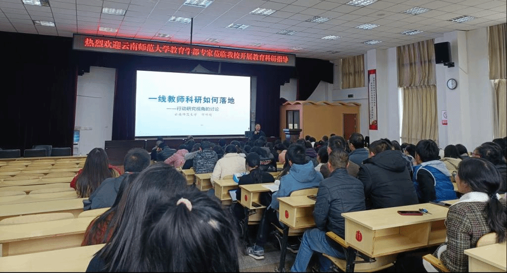 教育学部何顺超副教授还开展了以一线教师科研如何落地行动研究的视角为主题的讲座,与泸源中学教师就中学教师如何开展教育科研进行研讨交流。他针对一线教师如何将科研落地提出解决方案,并对行动研究的一般流程进行了详尽阐述。讲座现场教师纷纷表示收获颇丰,期待未来有更多高校教师能深入基层进行教育科研指导。