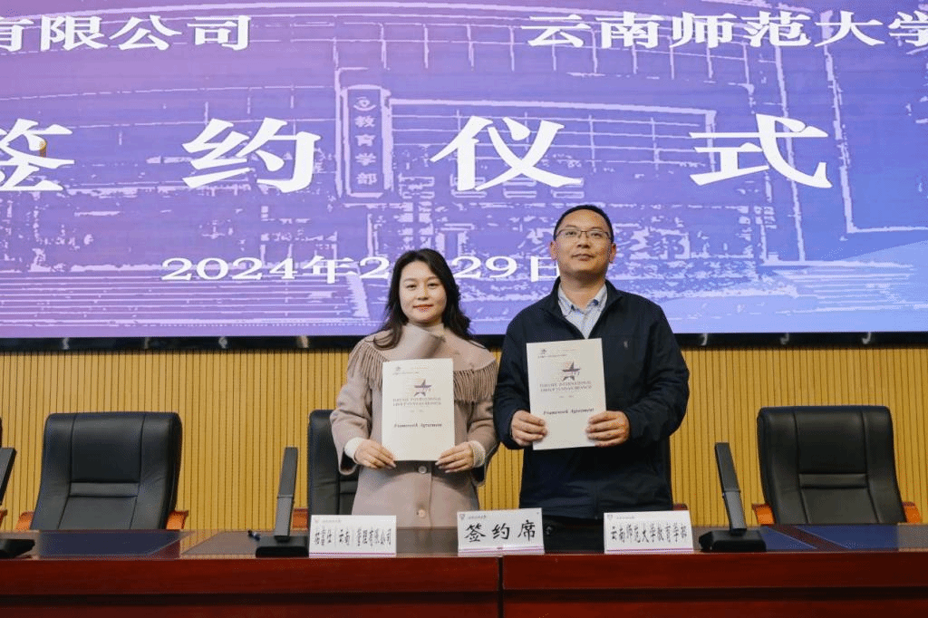 为加强校企合作,2月29日,教育学部与拓富仕(云南)管理有限公司在学前教育大楼签署合作框架协议。拓富仕(云南)管理有限公司总裁肖萍、副总范茜,教育学部领导班子成员及师生代表参加了签约仪式。仪式由学部党委副书记朱静虹主持。