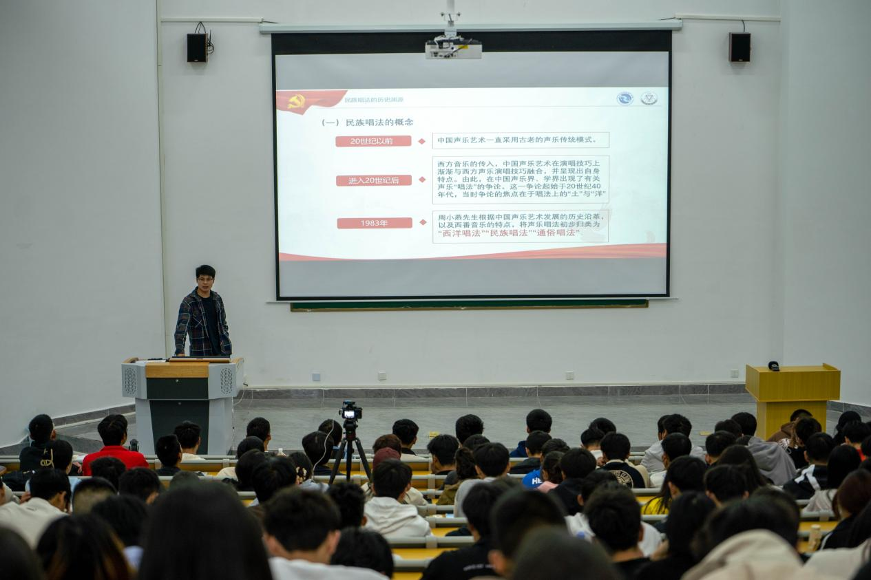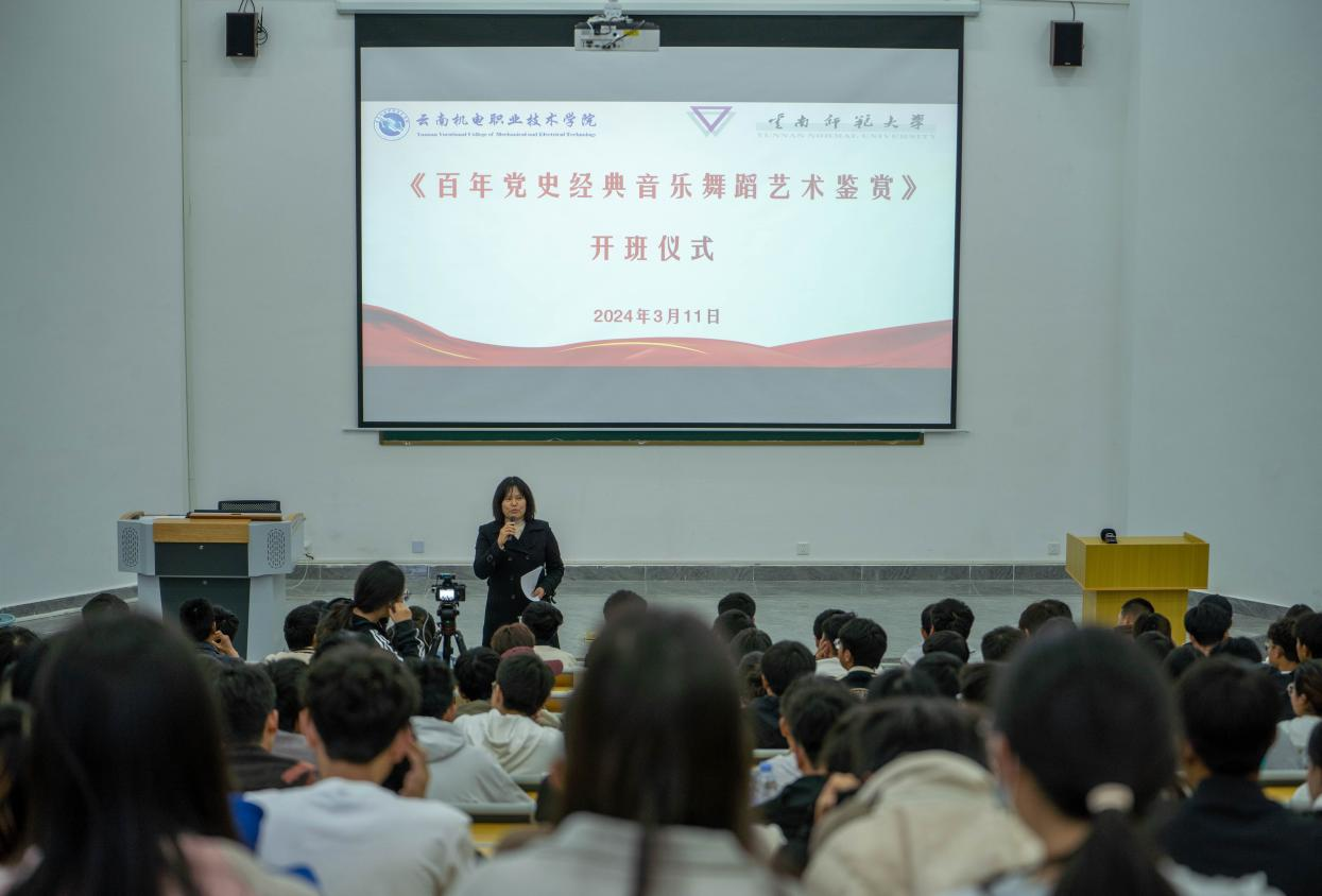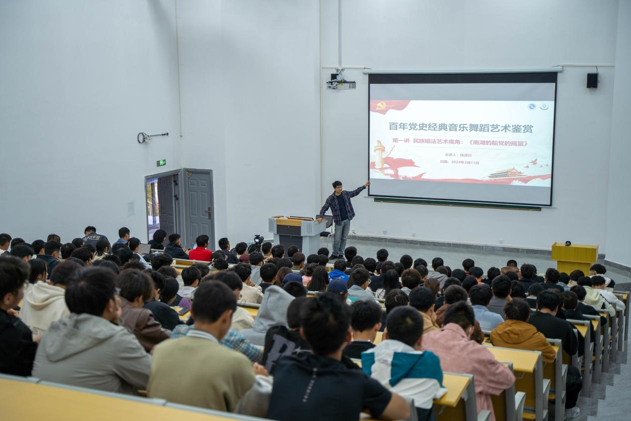近日,德赢官网音乐舞蹈学院《百年党史经典音乐舞蹈艺术鉴赏十八讲》项目受云南机电职业技术学院邀请在该校合作开设美育选修课。经过前期接洽和积极筹备,课程于3月11日晚在云南机电职业技术学院杨林校区正式开讲。德赢官网音乐舞蹈学院青年教师钱泽川讲授课程第一讲:民族唱法艺术视角《南湖的船党的摇篮》。