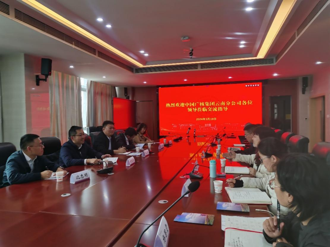 3月19日,中国广核集团云南分公司副总经理普智勇、王勇,生产运维部主任沈忠明、集控中心主任刘发炳、人力资源主管庞凌月等一行到能源与环境科学学院进行合作意向交流洽谈。学院党委书记刘莹,副院长陈玉保、夏涛,国家太阳能热水器质量监督检验中心(昆明)总工高文峰及相关老师参加本次座谈,座谈会由能环学院党委书记刘莹主持。