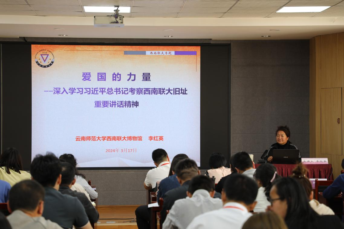 在主题党日活动上,西南联大博物馆馆长李红英为学员作“爱国的力量——深入学习习近平总书记考察西南联大旧址重要讲话精神”专题辅导。通过学习,习近平总书记考察西南联大旧址的每一帧动情画面、每一句谆谆教诲,更加深刻地镌刻在每一位学员心中。