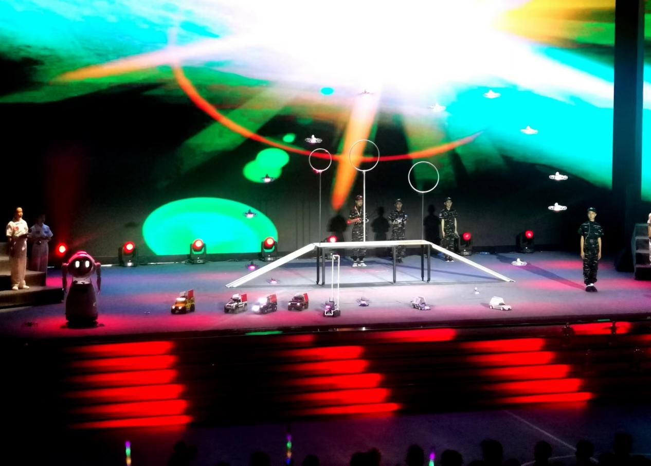 随着学校民乐团师生热情奔放的《喜洋洋》等曲目,表演拉开序幕。节目以时光为线,从“峥嵘岁月”,到“奔腾年代”,再到“追梦未来”,寻着西南联大红色基因,一路追忆,向同学、家长们展示了中国人靠着坚定的信仰从无到有、从富到强的伟大征程,引导同学们扛起共产主义接班人的责任与担当。