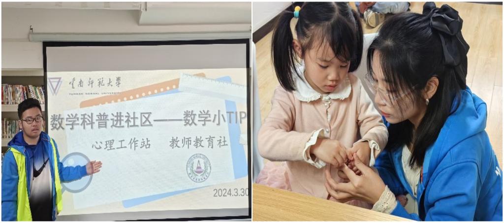 3月31日,团队在社区开展了数学模型展览活动,志愿者们先对汉诺塔、七巧板等各种数学模型进行展示和讲解,随后让小朋友们选择自己喜欢的模型,志愿者带领小朋友们动手拆卸和组装,并分小组进行汉诺塔和七巧板比赛。在比赛的过程中,志愿者让小朋友们通过亲身实践来探究数学模型的奥秘,并在小朋友们遇到困难时加以鼓励和指导,提升小朋友们的学习热情。比赛结束时,小朋友们与志愿者进行亲切交流,积极分享自己的心得体会。