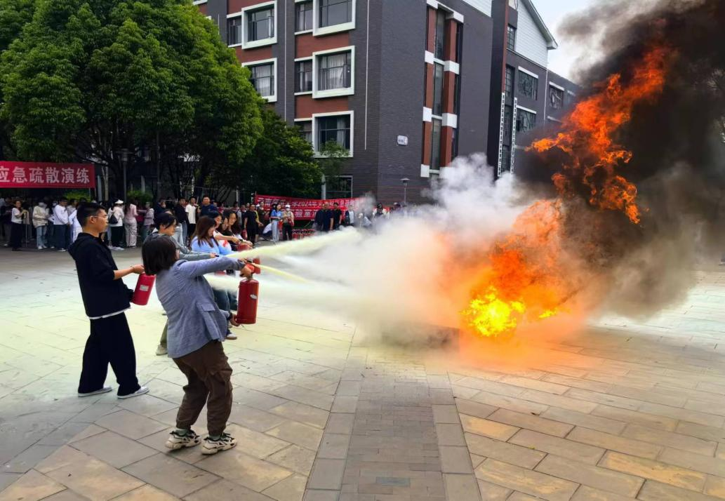 第三阶段,保卫处在两个校区的实验楼外空旷区域组织实验人员进行消防灭火演练,向师生介绍灭火器的正确使用方法,强调了灭火时的有效使用距离、角度、站位等注意事项。