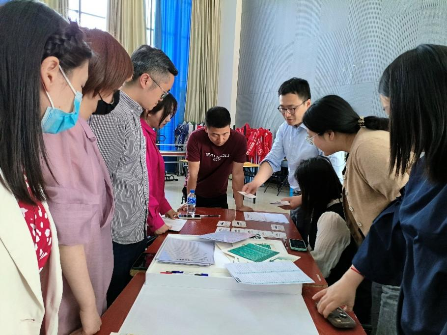 培训分为6个小组,就业处为每个小组配备一套(共6盒)完整工具箱供学习体验。研发总监刘畅通过“讲解+体验”的方式为参训教师介绍“性格大解密”、“特质海洋探索”、“价值观拍卖行”、 “生涯走马灯”、“职业操作盘”、“能力进阶指南”6个工具箱的设计思路、使用场景及操作方法,从职业性格探索、特质分析、职业价值观澄清、生涯规划方向、职业决策、行动路径等方面为老师们提供了操作引导和现场操作。在培训过程中,老师们认真聆听、表现积极反馈、思考和记录。老师们纷纷表示,通过此次培训,掌握了生涯咨询工具的使用方法,促进了生涯理论知识的有效运用,也对接下来开展个体咨询服务工作充满信心。