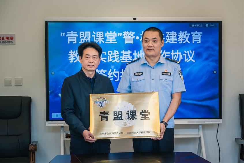 4月17日上午,昆明市公安局呈贡分局与德赢官网Vwin传媒学院在学校明德3号楼201会议室举行“青盟课堂”警校共建教育教学实践基地签约授牌仪式。