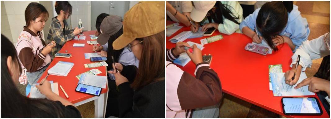 游园活动围绕趣味猜书名、DIY书签制作、我喜爱的一本书、诗词接龙、读书拼图、经典撷英摘抄等集趣味性与益智性于一体的小游戏展开。同学们通过写故事、绘书签、忆诗词、校发音等方式,开启阅读能力的头脑风暴,感受中华优秀传统文化的深厚底蕴,尽情从书本中汲取智慧和营养。