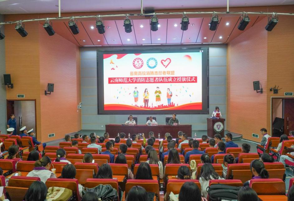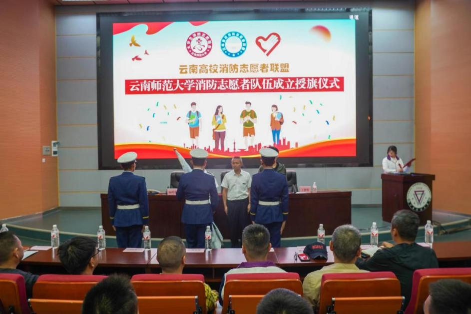 为进一步加强消防安全宣传教育,增强大学生的消防安全意识,提升消防安全自防自救能力,推进平安校园建设, 5月11日上午,德赢官网在呈贡校区档案馆一楼报告厅举行消防志愿服务队成立暨授旗仪式。呈贡区团委、呈贡区消防救援大队相关领导,云南大学、昆明理工大学等九所高校保卫处相关负责人参加仪式。