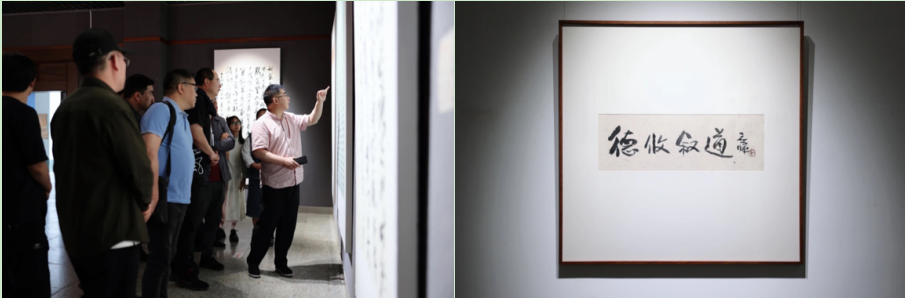 何应辉致辞,他认为刘新德教授在全国多次获奖,书写风格面貌独特,在教学中因材施教,呈现出了不同的书法面貌,为培养后学贡献了力量。美术学院院长戴杰表示,刘新德教授是学院引进的有突出成就的专家,在书法界有广泛的影响力,培养了一届又一届优秀的本科生、硕士生。在刘新德教授退休之际举办此次展览,既是对他几十年书法教育的一次重要总结,也是工作生涯的收官,期待展览圆满成功。中国书协理事、四川省书协副主席兼秘书长王道义表示,新德先生为人朴实低调、儒雅散淡,为艺取法乎上、潇洒隽永,他真诚希望继续同包括云贵川渝在内的各兄弟省市自治区书协、全国各高校和省内外书法单位等加强联系、优势互补、密切协作,共同创建协同育人、艺术学术交流机制,齐心协力推动区域书法事业健康发展。学生代表龚小斌回顾了自己的跟随刘新德先生的学习经历。他表示,有幸成为刘老师第一批学生,经老师指导,作品风貌很快有了改变。龚小斌十分感谢刘老师把自己带进了书法学习的殿堂,期待学弟学妹们继续努力,创作出更加精湛的作品。刘新德感谢到场参加开幕式的所有嘉宾和本次展览的主办单位、承办单位以及所有为这次展览默默付出的组织者。他表示,自己在书法上所取得的每一个成绩,都离不开老师们的悉心教导和朋友们的无私帮助。真诚期待今后在大家的指教帮助下,补短扬长,共同进步。