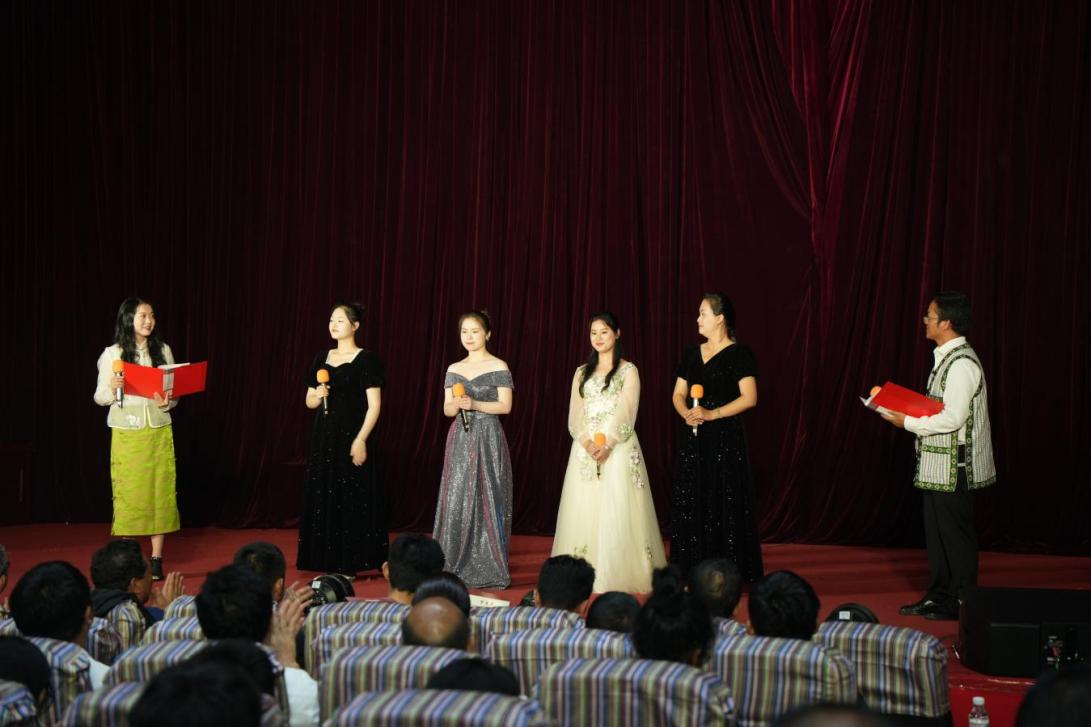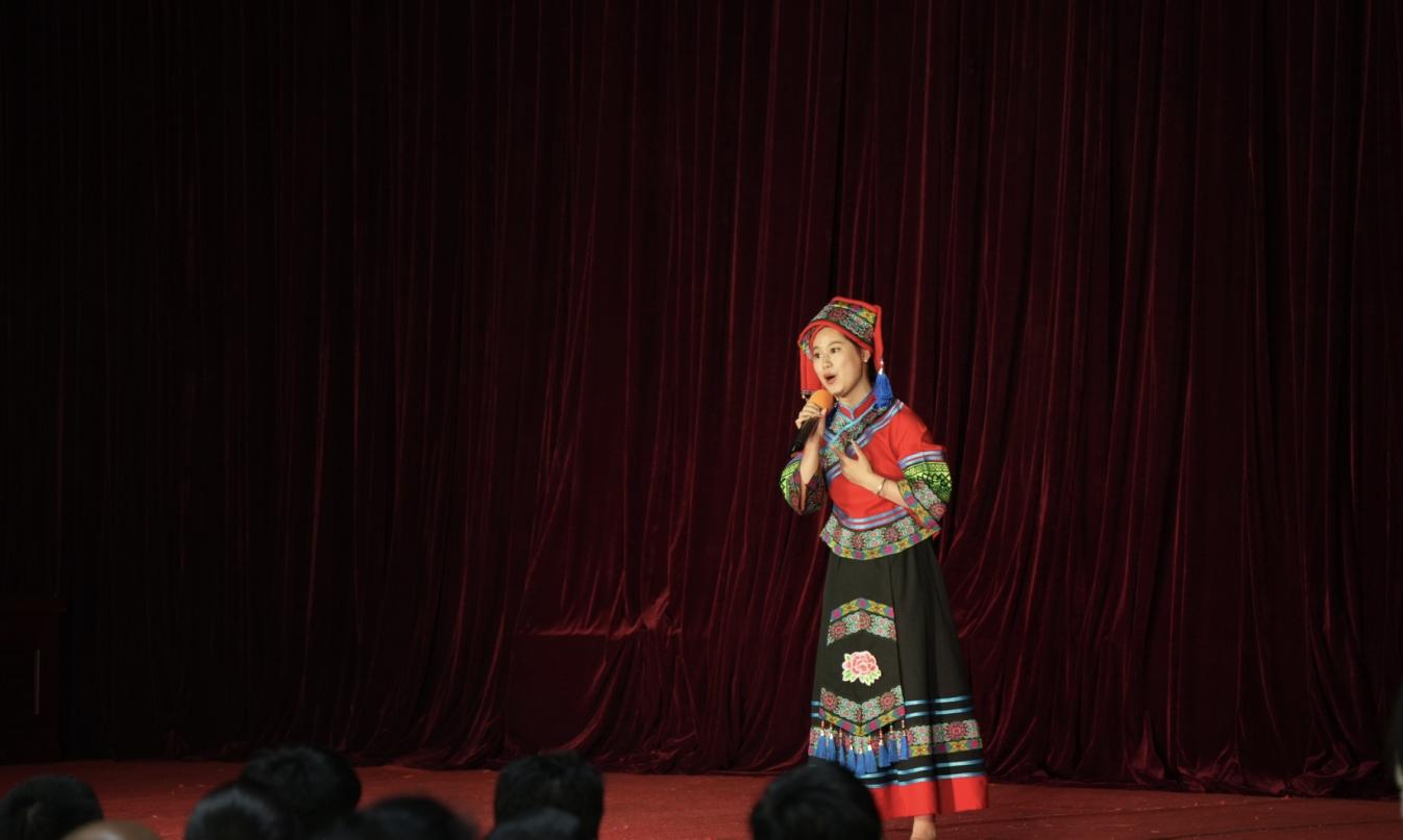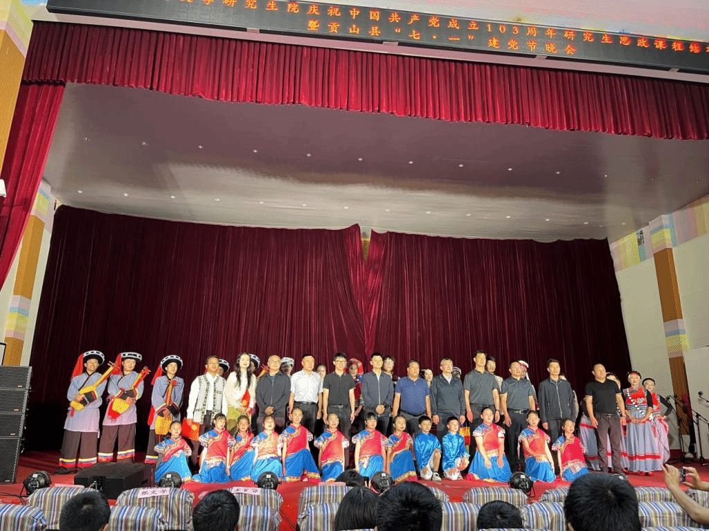 7月2日,德赢官网Vwin音乐舞蹈学院研究生课程思政项目结项暨贡山县“七·一”建党节晚会在贡山会堂举行。晚会现场,音乐教育专业的硕士研究生身着云南少数民族传统服饰,为观众带来了一场视觉与听觉的享受。