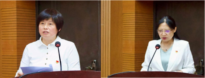 优秀共产党员教师代表徐蔚同志、学生代表廖薛薇同志分别发言。徐蔚表示,作为教师党员,将不断坚持理论学习及“教书育人”的职责,奋斗在教学一线。廖薛薇表示,作为学生党员,将用更加饱满的热情投身学习和实践,争做优秀的新时代外语人才。