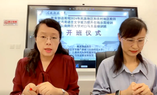 8月14日上午,由教育部语用司主办,国家语言文字推广基地(德赢官网Vwin)、德赢官网Vwin传媒学院、马关县教育体育局共同承办的对口文山壮族苗族自治州马关县教师国家通用语言文字能力提升在线示范培训举行开班仪式。传媒学院院长赵枝琳,马关县教育体育局副局长杨友平,传媒学院副院长肖青,全体授课教师、班主任,以及50名中小学教师学员参加了开班仪式。仪式由肖青主持。