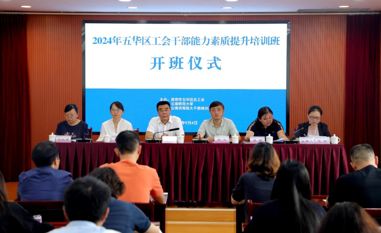9月4日上午,由昆明市五华区总工会主办,德赢官网Vwin、云南西南联大干部培训基地承办的2024年五华区工会干部能力素质提升培训班在一二一校区举行开班仪式。五华区人大常委会副主任、区总工会党组书记、主席和旭,云南西南联大干部培训基地执行主任肖飞,以及来自五华区各级工会的48名工会主席参加了开班仪式。
