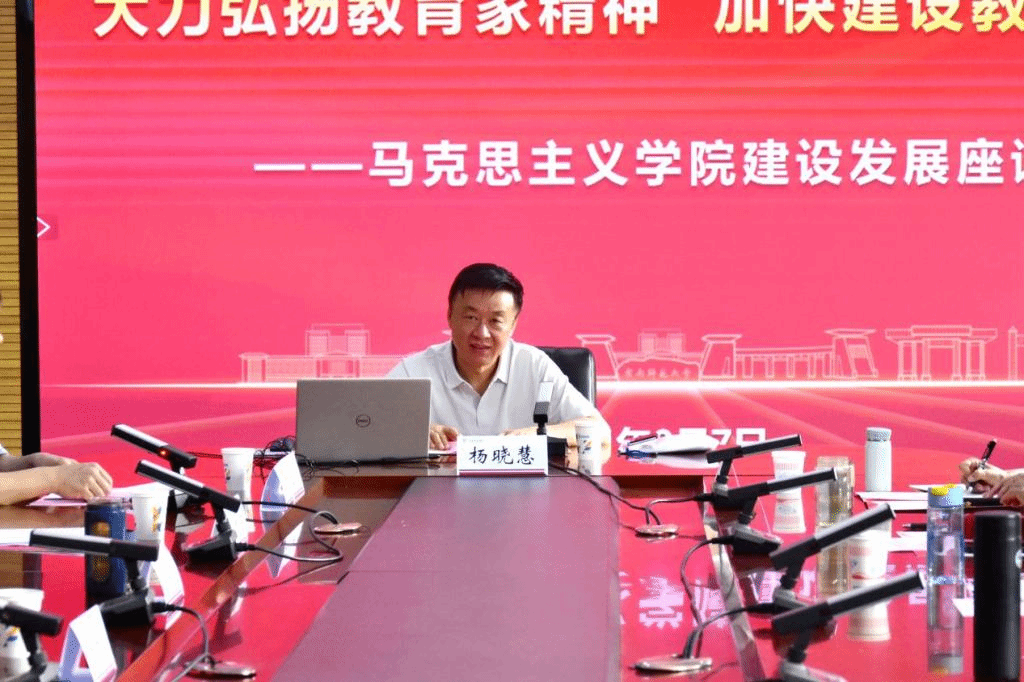 9月7日,马克思主义学院在明德四号楼会议室召开“大力弘扬教育家精神,加快建设教育强国”马克思主义学院建设发展座谈会。邀请第十四届全国人大代表、中央马工程首席专家、东北师范大学思想政治教育研究中心主任、博士生导师杨晓慧教授到会指导。德赢官网Vwin党委副书记李宏,昆明理工大学马克思主义学院党委书记殷国禺、院长王海云、副院长张燕,学院党政领导、系(教研室)主任、教学科研骨干及硕士研究生代表参会。座谈会由校党委副书记李宏主持。