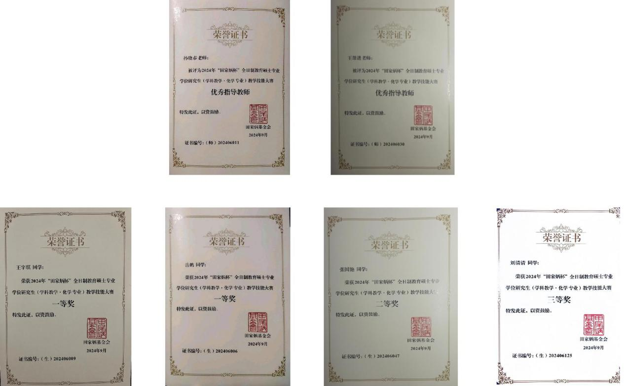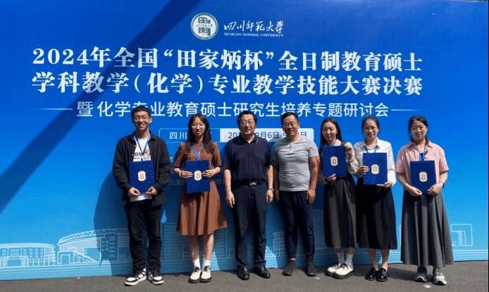 全国“田家炳杯”全日制教育硕士专业学位研究生学科教学(化学)专业教学技能大赛,是目前国内层次最高、规模最大的教育硕士教学技能竞赛,分为初赛和决赛两个阶段。来自北京师范大学、华东师范大学等全国87所院校的405名选手参加了初赛,共198名选入围决赛。9月8日,决赛在四川师范大学落下帷幕,经过专家评审,最终产生一等奖24人,二等奖42人,三等奖78人。德赢官网化学化工学院学生王宇琪、岳鹏荣获一等奖,张国艳荣获二等奖,刘清清获三等奖,教师孙晓春、王帮进获评“优秀指导教师”。