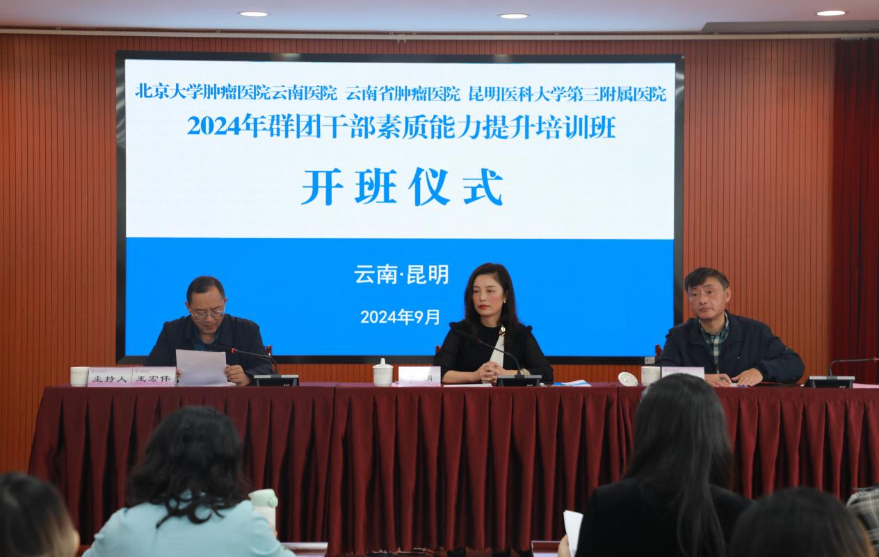 9月12日,由北京大学肿瘤医院云南医院 云南省肿瘤医院 昆明医科大学第三附属医院主办,云南西南联大干部培训基地承办的“2024年群团干部素质能力提升培训班”在一二·一西南联大校区举行开班仪式。北京大学肿瘤医院云南医院 云南省肿瘤医院 昆明医科大学第三附属医院党委副书记、工会妇联主席李娟,工会常务副主席、妇联专职副主席杨寿涛,团委书记陆彦霓,云南西南联大干部培训基地执行主任肖飞,以及来自医院的47名工会干部、团学干部参加了开班仪式。仪式由云南西南联大干部培训基地执行副主任王宏伟主持。
