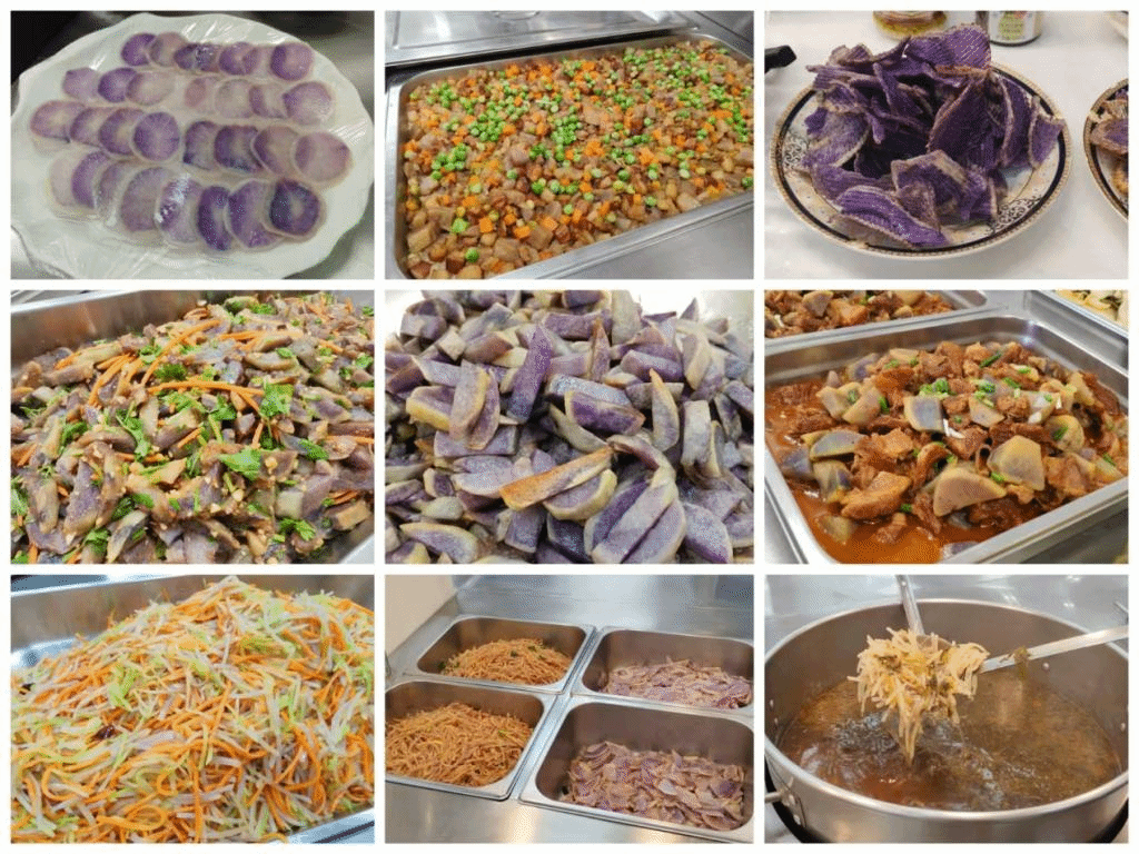 在美食节现场,“师大6号”被制作成云南醋溜紫洋芋、云南红烧牛腩紫洋芋、云南三色彩、云南风味紫洋芋汤以及云南铜锅紫洋芋焖饭等菜品。这些美食不仅保留了紫色马铃薯的原汁原味,还融入了各种创意元素和烹饪技巧,每一道菜品都独具特色,令人回味无穷。