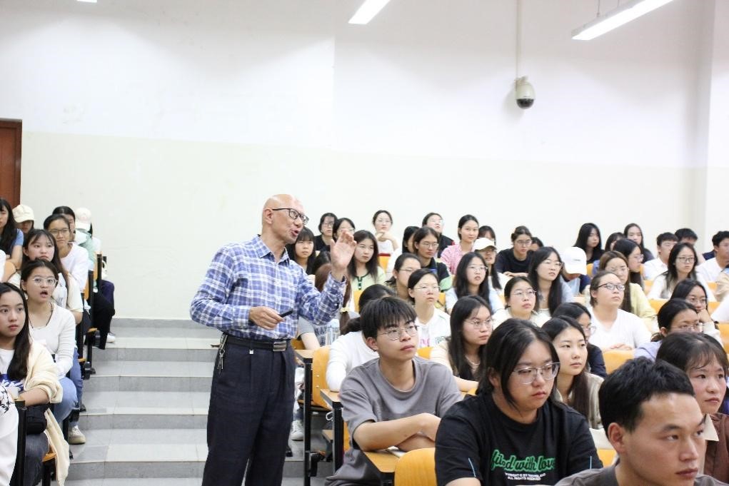 金改平以“中小学教师的职业角色与职业修为”为题,从自身多年工作阅历为同学们讲解“做好教育,既要方法好,更要方向对”。他引用《弟子规》《淮南子》等作品为同学们剖析了“方向”的重要性。通过身边具体而翔实的案例分析,他论证了“教书”与“育人”“知书”与“达理”的辩证统一关系。讲座现场气氛热烈,金改平为同学们上了一堂生动的德育课。