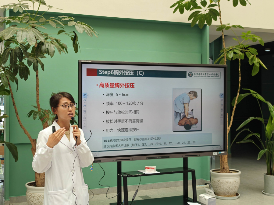 培训中,昆明医科大学第一附属医院急诊科医生张杰和刘晓雪围绕心肺复苏的概念、操作要点、心脏骤停的临床表现与诊断、心肺复苏的急救步骤以及电除颤的操作流程等方面,进行了全面而专业的知识讲解和示范。