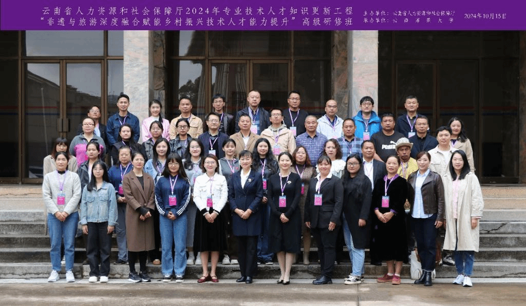 10月15日,云南省人力资源和社会保障厅专业技术人才知识更新工程2024年“非遗与旅游深度融合赋能乡村振兴技术人才能力提升”高级研修班在德赢官网举行。本次研修班由云南省人力资源和社会保障厅主办,德赢官网Vwin继续教育学院承办,来自全省从事文化、旅游相关工作的专业技术人员、管理人员和非遗传承人50余人参加了研修。