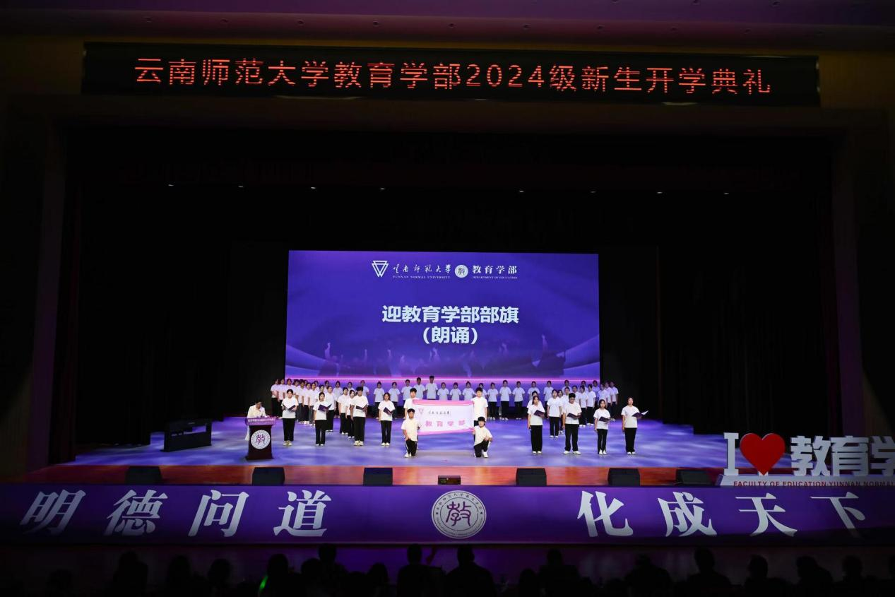 典礼在庄严的国歌声中拉开序幕。伴随着教育学部合唱团带来的《西南联大校歌》,现场全体师生迎教育学部部旗,坚守师大人刚毅坚卓的底色,开启新学期奋进拼搏新征程。